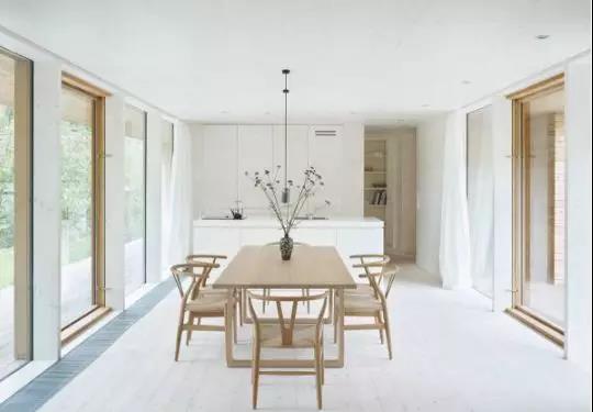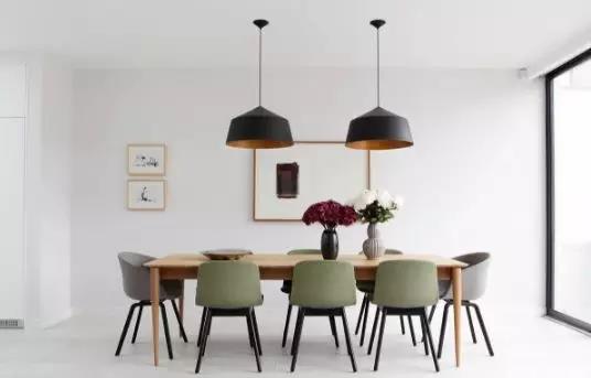 如果餐廳面積不夠大,還可運(yùn)用一張北歐風(fēng)格的長(zhǎng)形餐桌去拉長(zhǎng)整個(gè)餐廳的長(zhǎng)度。