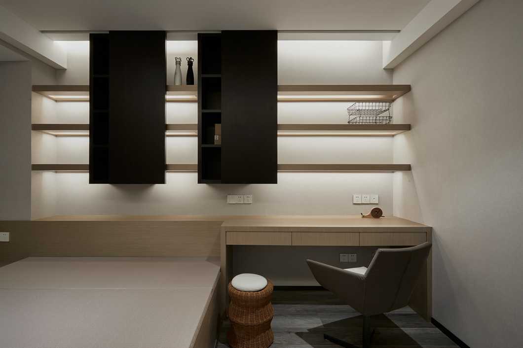 書房于客廳僅一扇移門為界,通透的玻璃讓兩個空間保持獨(dú)立的同時增加了許多互動感,釋放了空間的可能性