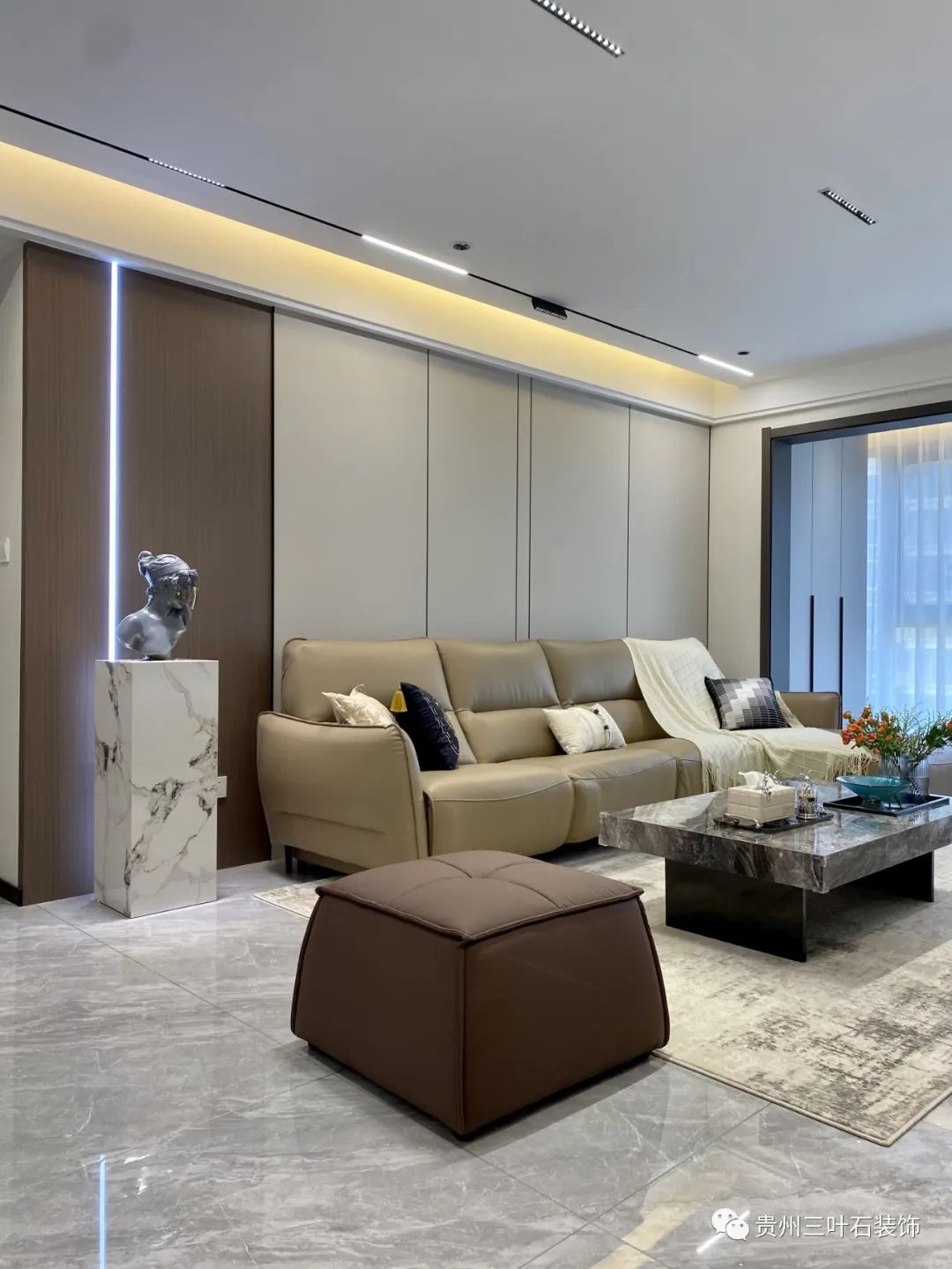 整體簡潔的設計線條配以造型簡約的雙眼皮吊頂,低調優(yōu)雅又不失氛圍感,打造出有層次和質感的視覺效果。 無主燈設計,提升了空間的通透感。 選擇瓷磚通鋪,搭配同色系美縫,耐臟又顯得寬敞,滿墻餐邊柜,儲物空間特別大,家里的日常用品和囤貨統(tǒng)統(tǒng)都能放進去。